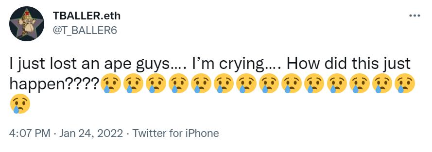 យោងតាមសារមួយលើ Twitter ខាងលើរបស់លោក TBALLER.eth បានបង្ហាញពីការភ្ញាក់ផ្អើលការខាតបង់របស់គាត់ “ខ្ញុំបានខាតបង់រូបភាព NFT...មិនគួរឲ្យជឿ...តើមានអ្វីកើតឡើងឲ្យប្រាកដ?” ។ ដោយការបង្ហោះមួយនេះបានធ្វើឲ្យមាន ការចាប់អារម្មណ៍ទៅលើអ្នកលេង Crypto ជាច្រើននាក់ ហើយមានចម្ងល់ទៅលើអ្វីដែលបានកើតឡើង។ បន្ទាប់មានការស៊ើបអង្កេត, វាជា bug បណ្ដាលមកពី ព័ត៌មាន NFT smart contracts ដែលសម្រាប់ទទួលការផ្ទេរកម្មសិទ្ធឌីជីថល NFT គឺមិនត្រូវគ្នាជាមួយនឹង ព័ត៌មានដែលទីផ្សារ OpenSea បានបង្ហាញទៅកាន់អ្នកប្រើប្រាស់ ដែលជាចំណុច Hacker អាចជ្រៀតកេងយកចំណេញបាន។